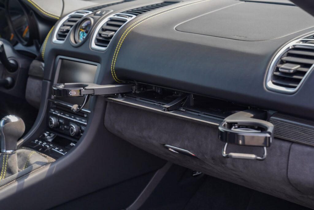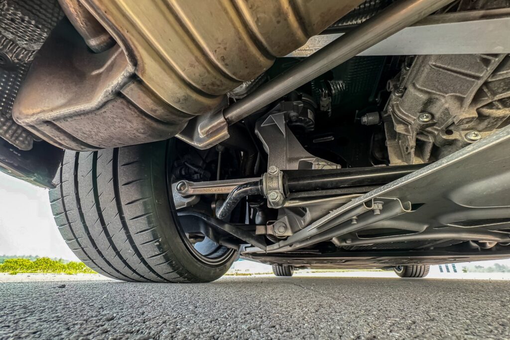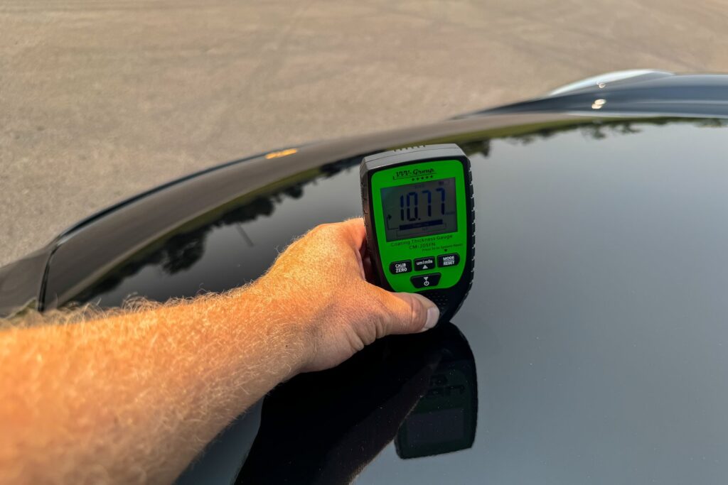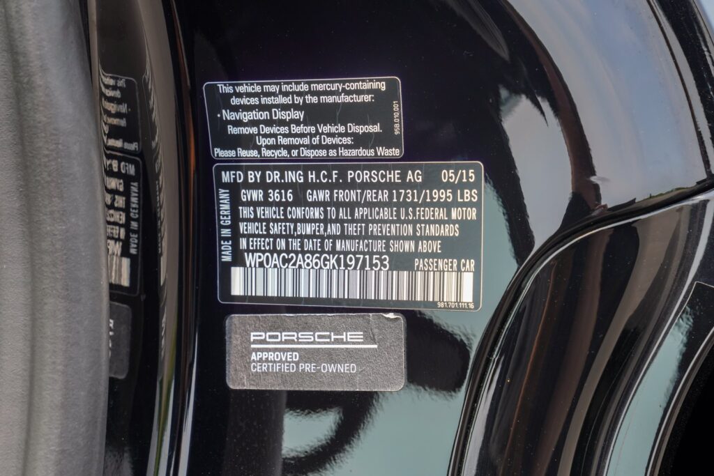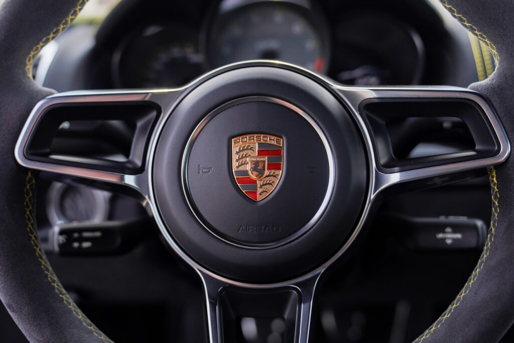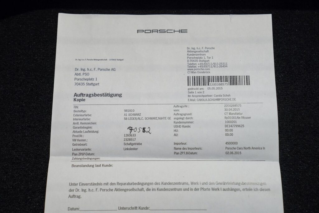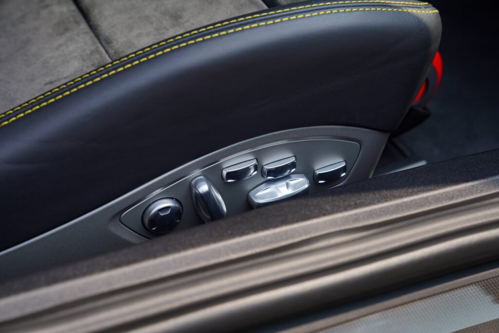 Satin Black 20″ GT4 alloy wheels were mounted with Michelin Pilot Sport 4S tires in October 2024. The car was ordered with optional $7,400 Porsche Ceramic Composite Brakes (PCCB) with yellow-painted Porsche-branded calipers. The GT4 utilized front suspension components from the 991.1 GT3 as well as a specially tuned multi-link rear setup, Porsche Stability Management (PSM), and PASM adaptive dampers. A brake fluid flush was performed in October 2024.