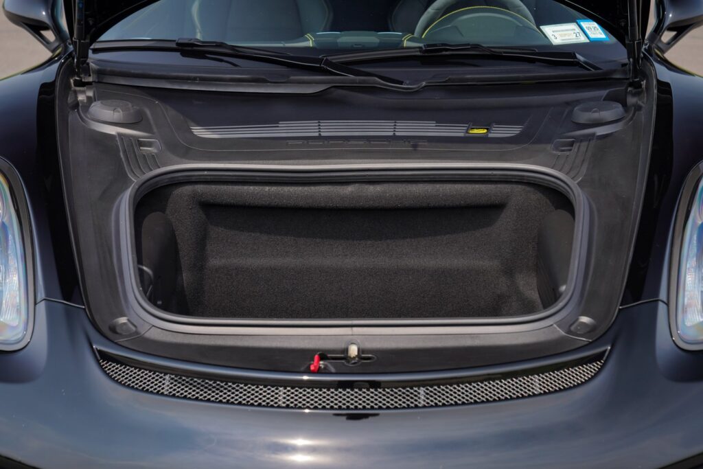 The rear cargo area covers the mid-mounted 3.8L flat-six, which was shared with the contemporary 991 Carrera S and was factory rated at 385 horsepower and 309 lb-ft of torque. The battery and spark plugs were replaced in October 2024.
