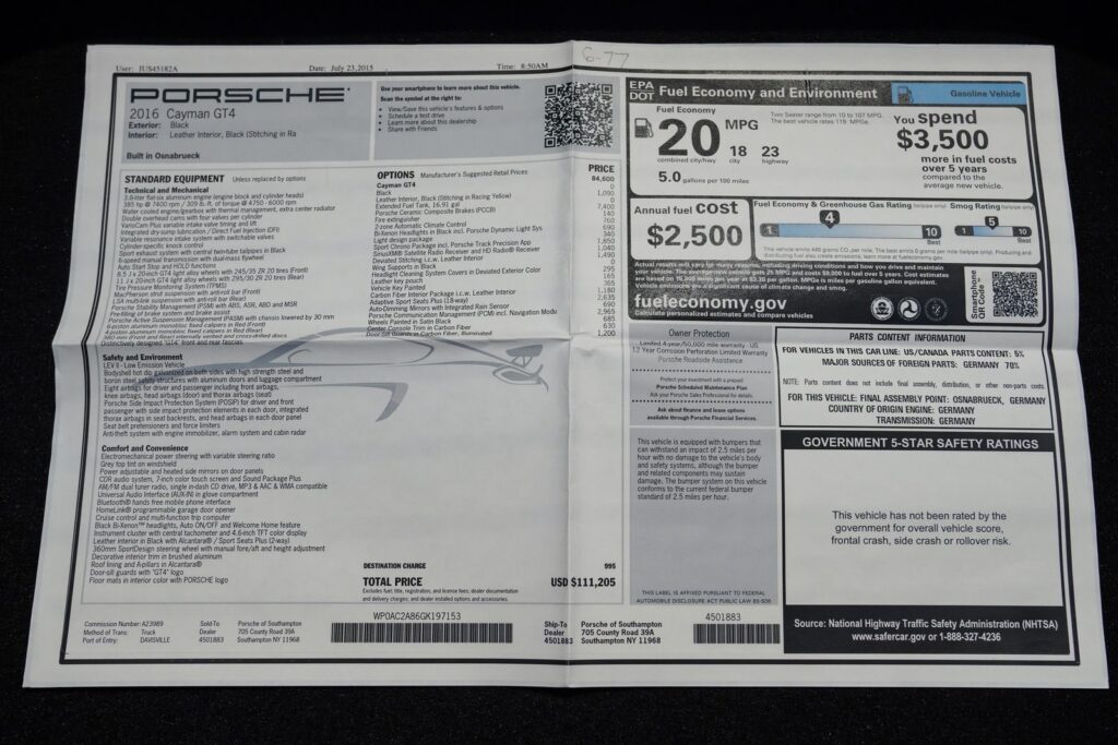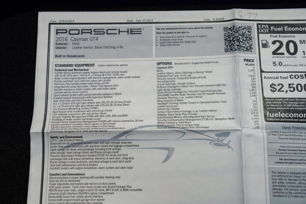 2016 Porsche Cayman GT4 has 7k miles and was ordered with nearly $26k in options, including Porsche Ceramic Composite Brakes, Racing Yellow deviated stitching, 18-way Adaptive Sport Seats Plus, and Black xenon headlights with PDLS!